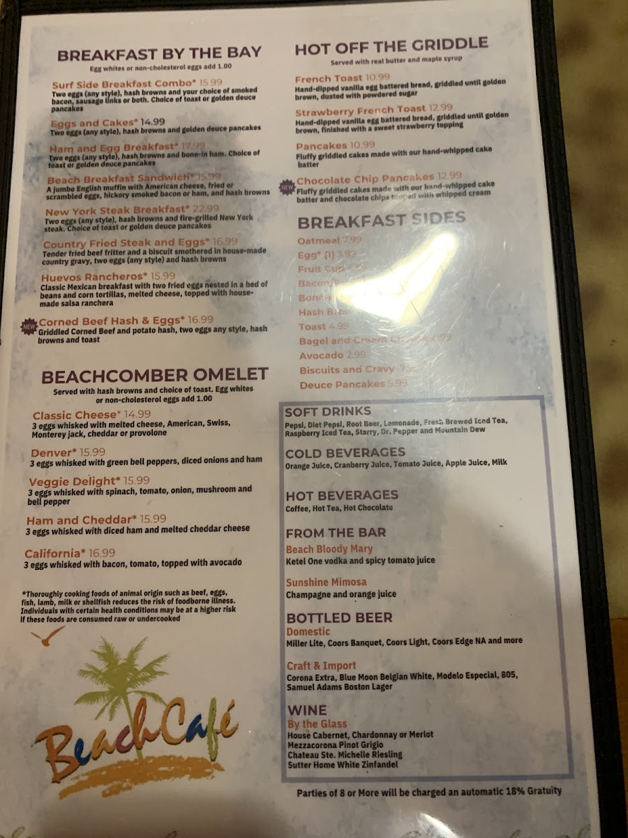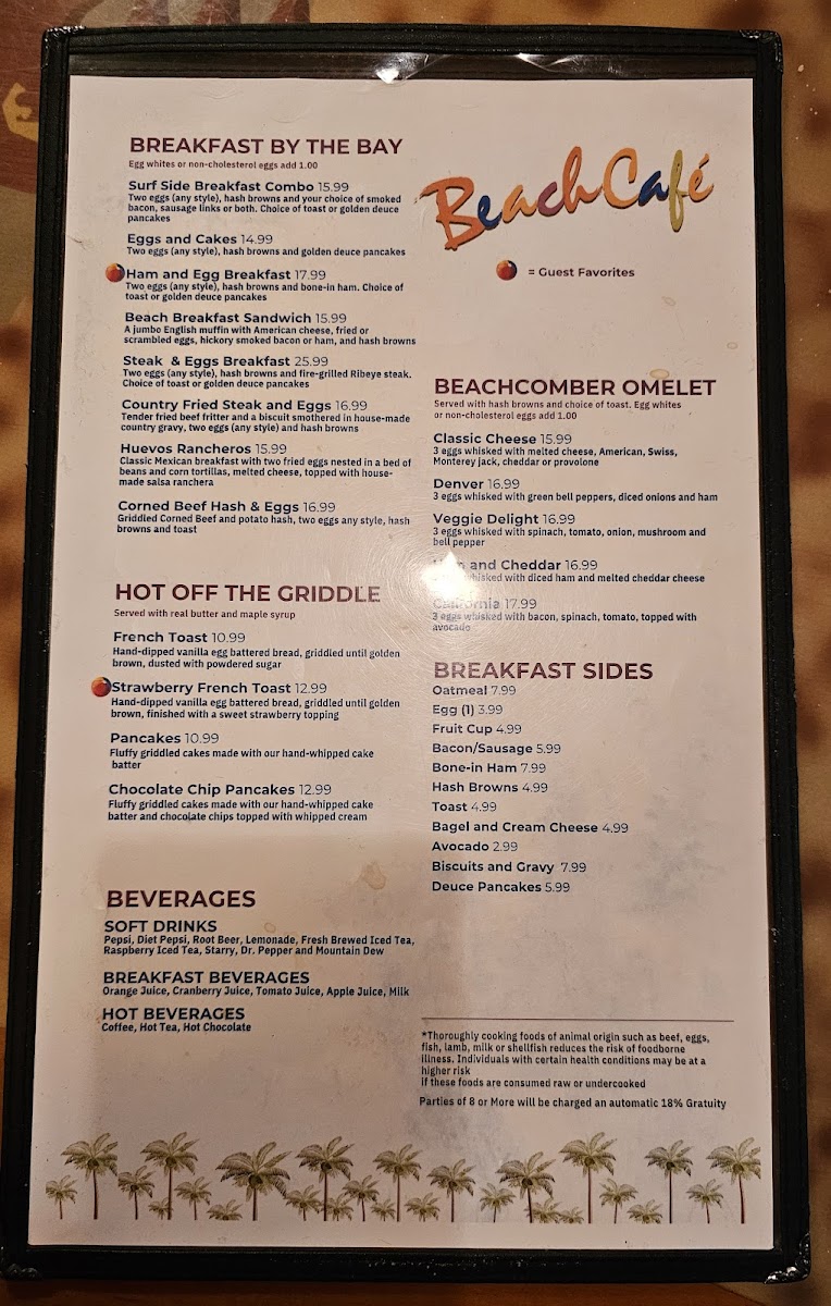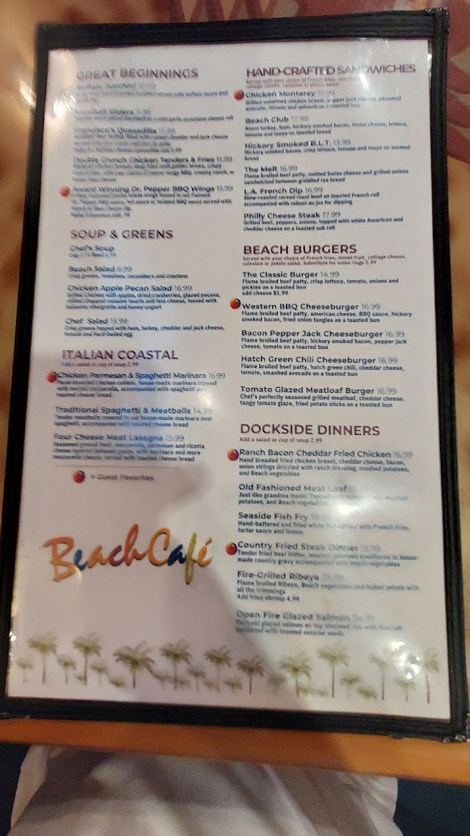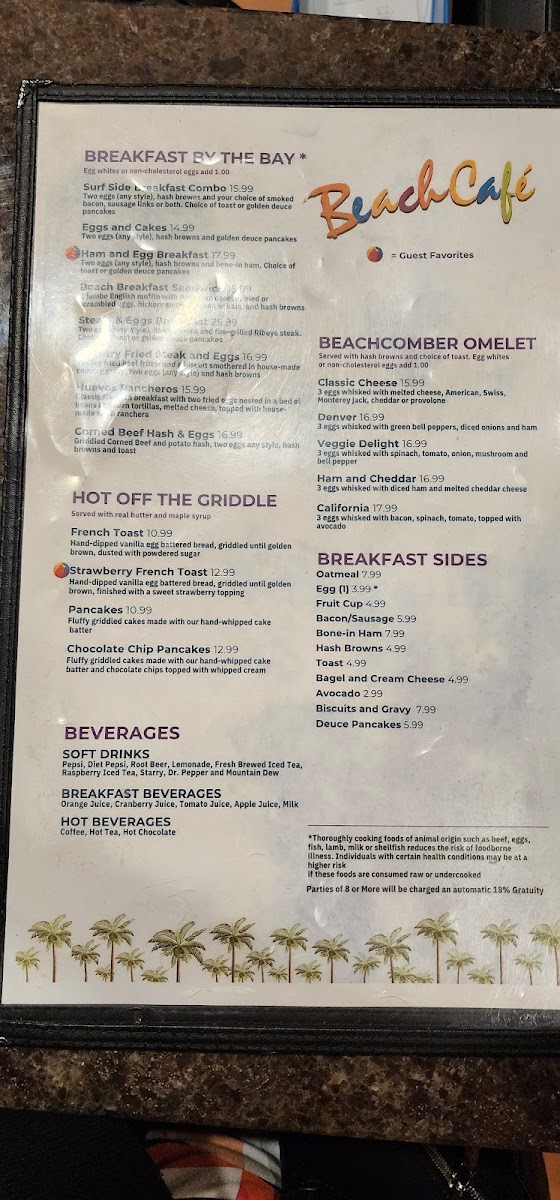 The menu at Beach Cafe Harrah's Laughlin Casino features a variety of American restaurant selections organized into several key categories. Diners can find options suitable for breakfast, lunch, and dinner, making the menu versatile for different meal occasions.